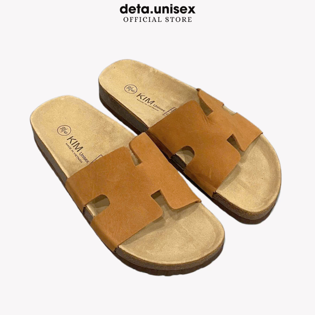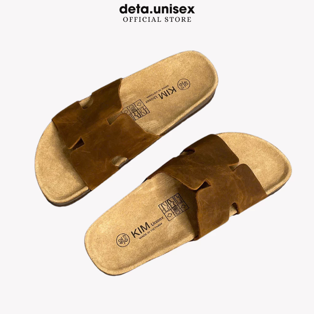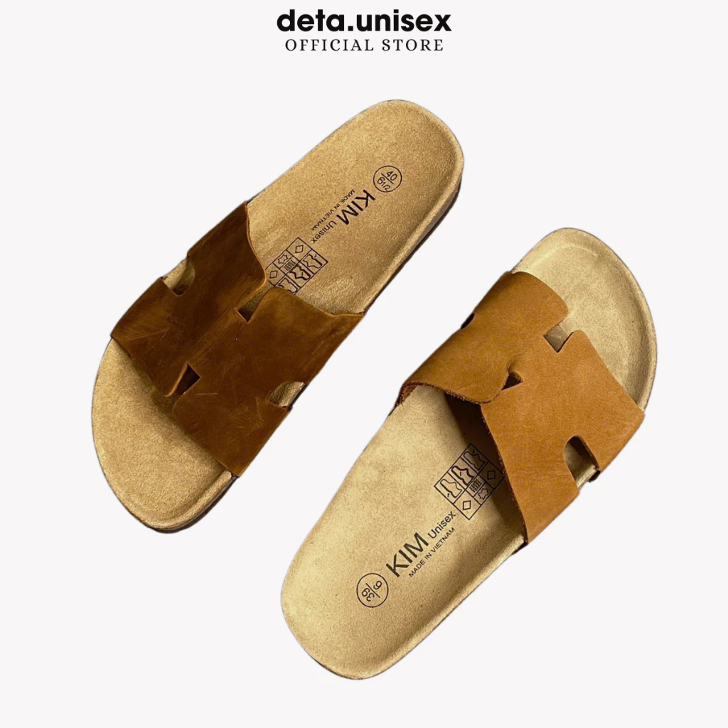 Dép đế trấu da bò thật chữ H hiệu KIM chính hãng Detaunisex - DEBO14