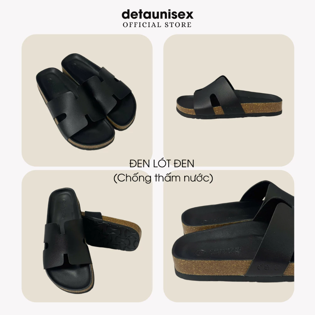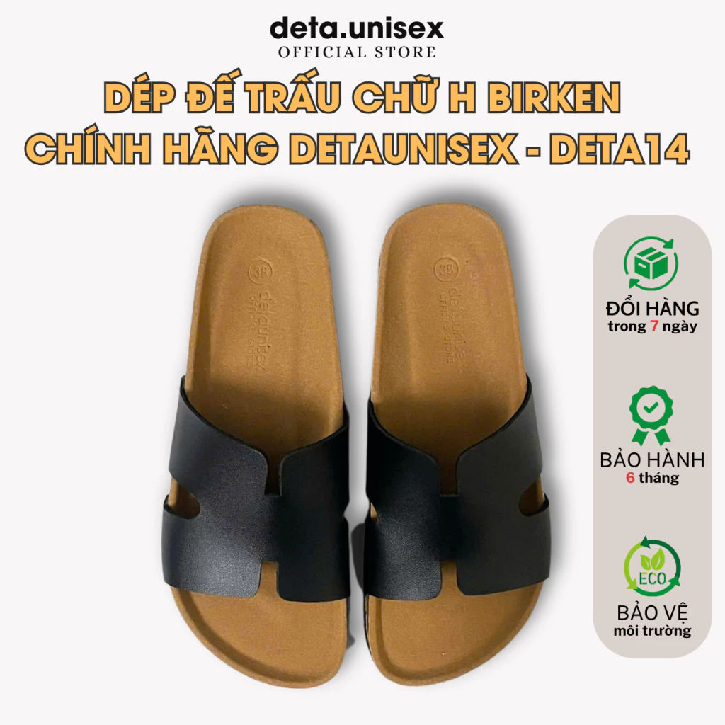 Dép dế trấu đi mưa chữ H đen phong cách Hermers - DETA14D là một mẫu dép đế trấu unisex, có thiết kế đơn giản, thanh lịch, phù hợp với cả nam và nữ. Dép có đế trấu được làm từ gỗ, mùn cưa và nhựa cây, thân thiện với môi trường. Phần quai dép được làm bằng chất liệu da nhân tạo PU, bền đẹp và mềm mại. Dép có chữ H nổi bật ở mặt trước, mang lại vẻ thời trang và cá tính cho người sử dụng.